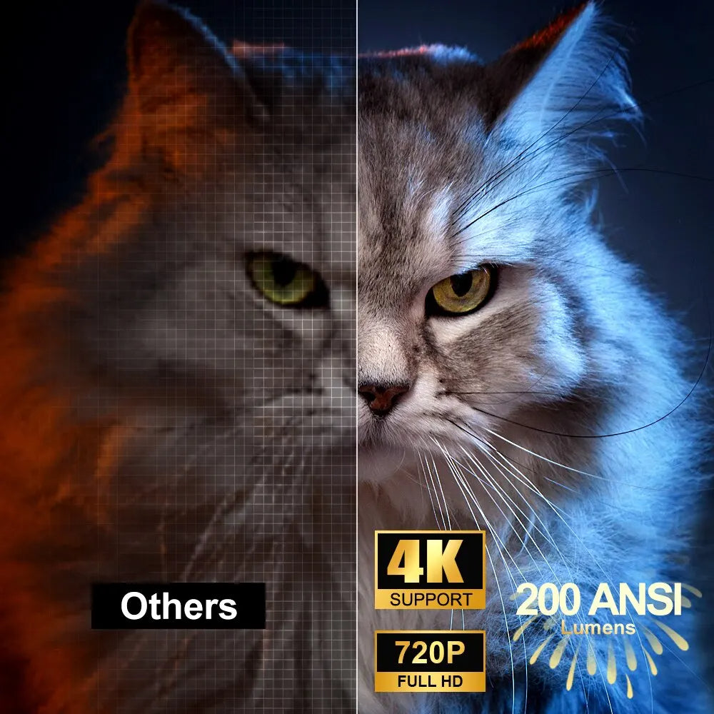 Cufundați-vă într-o experiență cinematografică de înaltă calitate cu mini-proiectorul HY300. Deși acceptă o rezoluție de până la 1080P, acest proiector este conceput să afișeze o rezoluție clară și clară de 1280x720P, îmbunătățind fără efort serile de film. Integrarea Android 11 asigură o interfață inteligentă și intuitivă, oferindu-vă acces la o multitudine de opțiuni de divertisment la îndemână. Cu cea mai recentă tehnologie WIFI6, experimentați conexiuni mai rapide și mai fiabile, perfecte pentru streaming fluid. Compatibilitatea Bluetooth 5.0 oferă conectivitate fără probleme la dispozitivele dvs., permițându-vă să redați conținut wireless și să controlați proiectorul cu ușurință. Deși este conceput compact pentru o portabilitate ușoară, acest proiector este ideal atât pentru spații interioare confortabile, cât și pentru afișaje exterioare grandioase. Indiferent dacă vă transformați camera de zi într-un home theater sau proiectați sub stele, HY300 vă asigură că nu sunteți niciodată prea departe de divertismentul premium. Notă: Deși HY300 poate afișa conținut din surse 4K, rezoluția sa nativă este de 1280x720P.